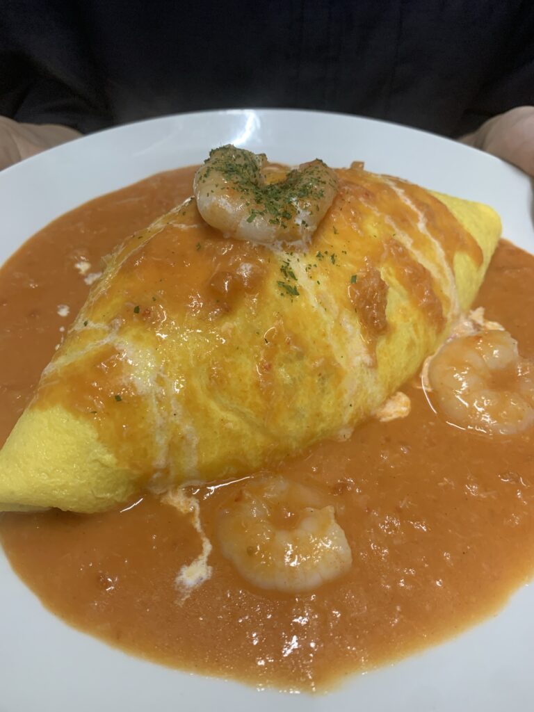 是非,店長おまかせをご賞味下さい! 2025年9月24日最新情報オムライスディナー, 北千住ディナー, 店長おまかせオムライス, 足立グルメ,kitchen-eggs ♦エビとカニのトマトクリームソースオムライス
