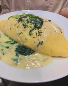 2/5の日替わりオムライスは、ツナとほうれん草のクリームソースオムライスです❗