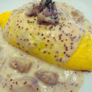厚切りベーコンの粒マスタードトマトソースオムライス